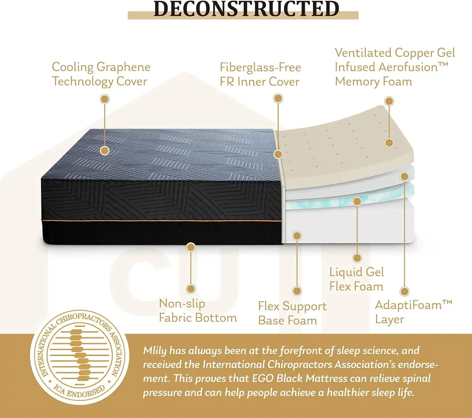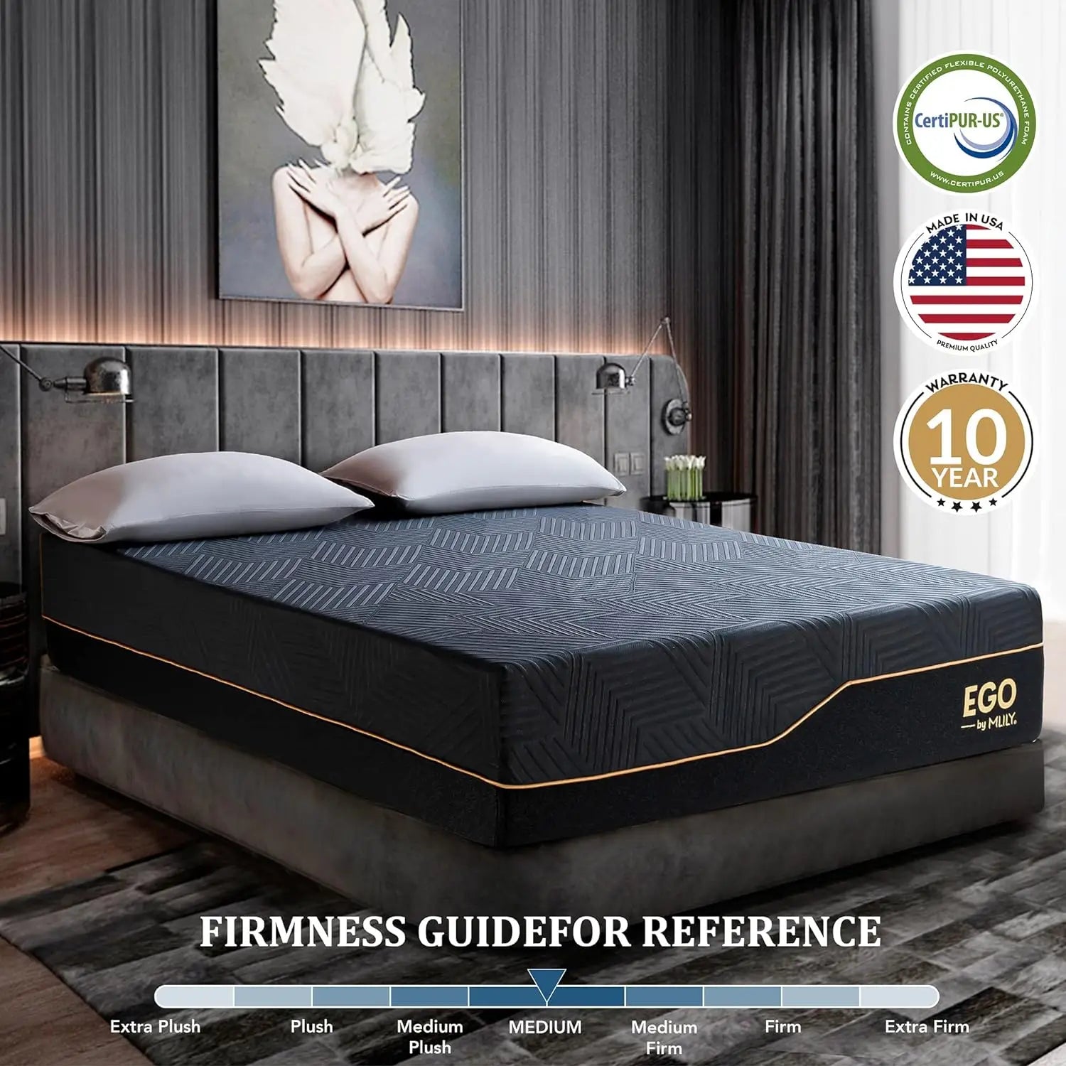- CertiPUR-US Certified & Endorsed by ICA: Proudly made in USA, MLILY EGO BLACK mattress is crafted for safety, durability, received the International Chiropractors Association's endorsement and can help people achieve a healthier sleep life. Made without harmful substances, our memory foam and fabrics comply with all applicable mandatory and voluntary safety standards for mattress products.